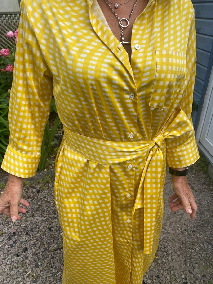ROBE JAUNE A CARREAUX/ Entretien PROGRAMME LAINE / 97% COTON, 3% ÉLASTHANNE