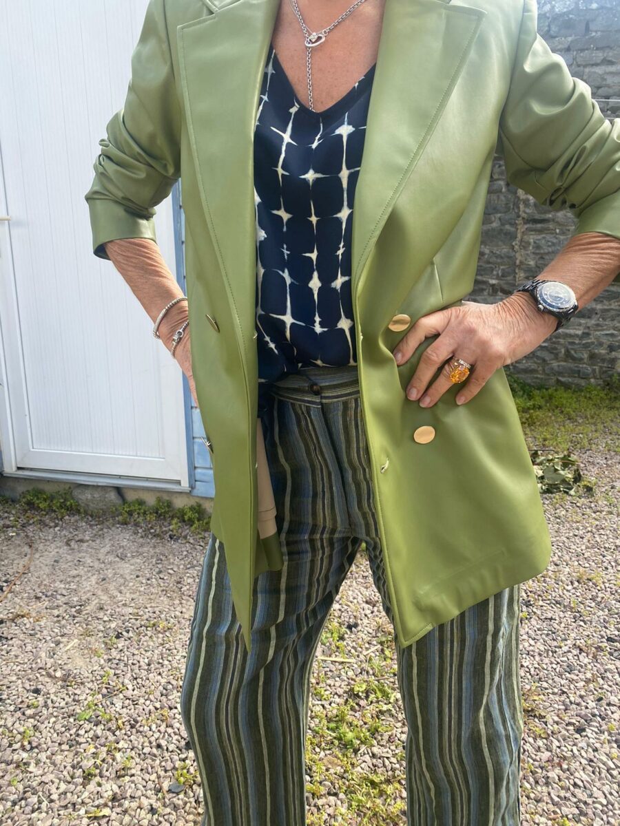 VESTE SIMILI CUIR VERT AMANDE / Lavage Main / 100% Polyester + Doublure 100% Polyester